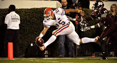 JJ: I think any player that has as much exposure as Tebow does is probably overhyped. I wouldn't call him overrated....during his 3+ seasons in Gainesville, Florida has been the premier national program, and he is the unquestioned leader of the team. In this age of ESPN, the hype is understandable. I just wish one of the esteemed SEC officials would throw a flag on him one time when he puts on his chest pounding, hands in the air show after a first down that he seems to do at least once per game. Let's just say we've seen UGA players call much less attention to themselves this season and receive extremely damaging penalties for it.